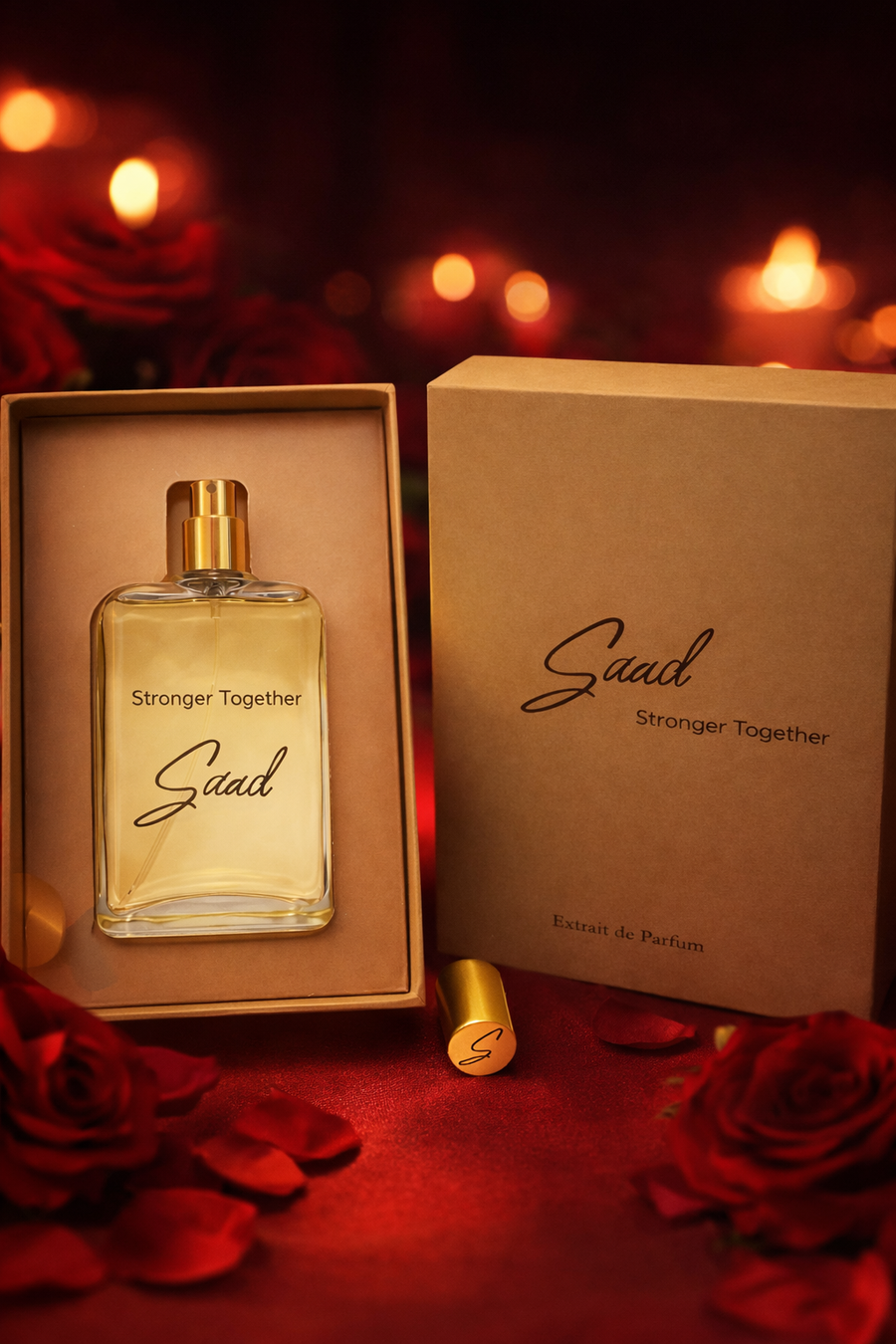 Stronger Together perfume inspired by Stronger With You, offering a warm sweet chestnut-vanilla scent with a smooth masculine character and long-lasting performance.