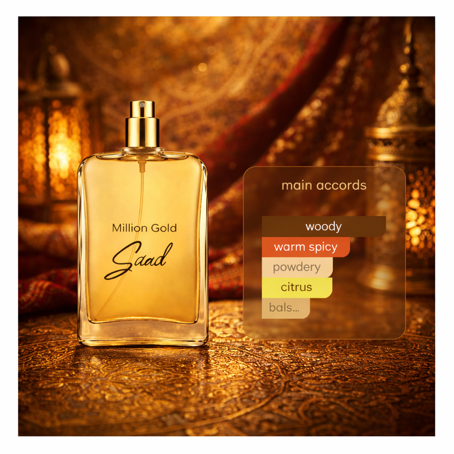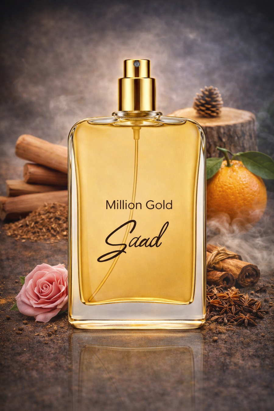 مليون جولد(Million Gold) من Saad Perfumes عطر رجالي فاخر يمزج النفحات الدافئة والخشبية مع ثبات و فوحان خيالي خيار مثالي للرجل الواثق والمميز.