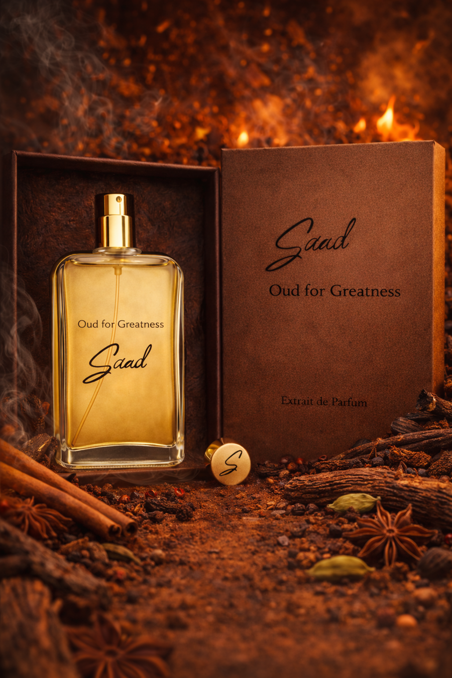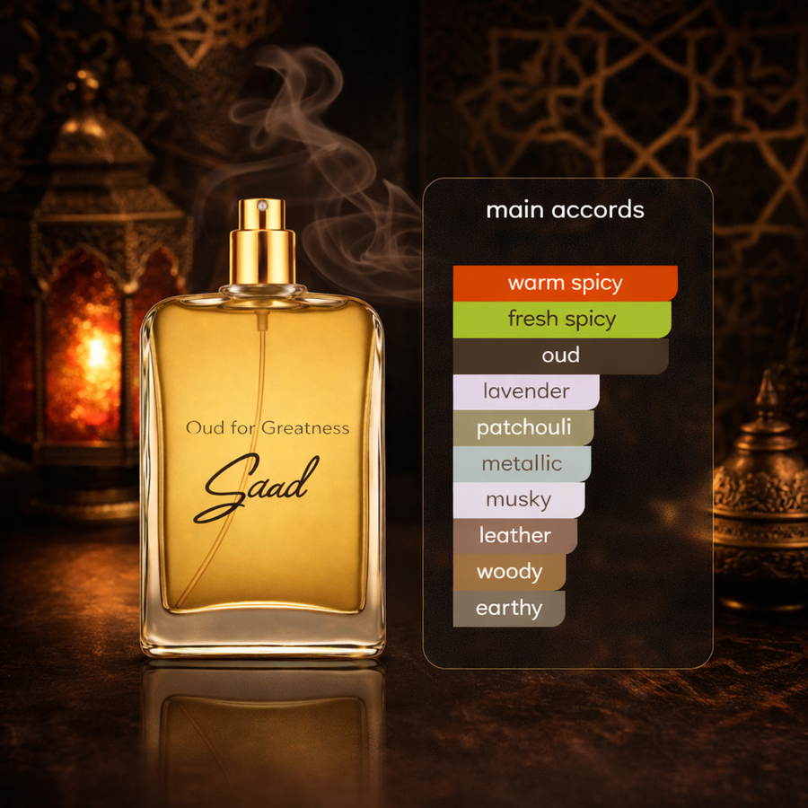 عود فور غريتنس (Oud for Greatness) من Saad Perfumes عطر فاخر وقوي بنفحات العود الغني والتوابل العميقة مع لمسة خشبية أنيقة. ثبات وفوحان استثنائيان