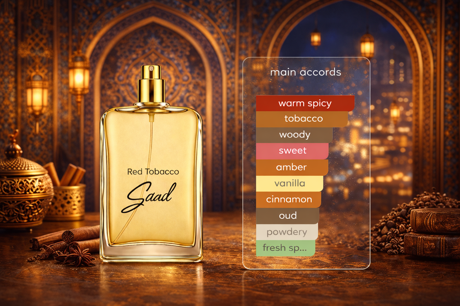 - ريد توباكو (Red Tobacco) من Saad Perfumes عطر جريء وقوي بنفحات التبغ الحار والتوابل الدافئة ثبات وفوحان استثنائيان لعشاق العطور الثقيلة والفاخرة.